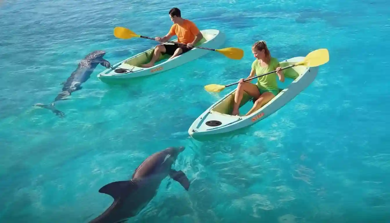 Experience an activity that will blow your mind with Splendid Sunny Retreats! Enjoy the Atlantis Dolphin Kayak trip at Dolphin Bay Lagoon. Watch friendly dolphins surround you as you kayak in tranquil blue waters. This exciting 30-minute activity is available daily, 9:45 AM–6:30 PM. Tickets start from AED 545. Book this unique adventure!